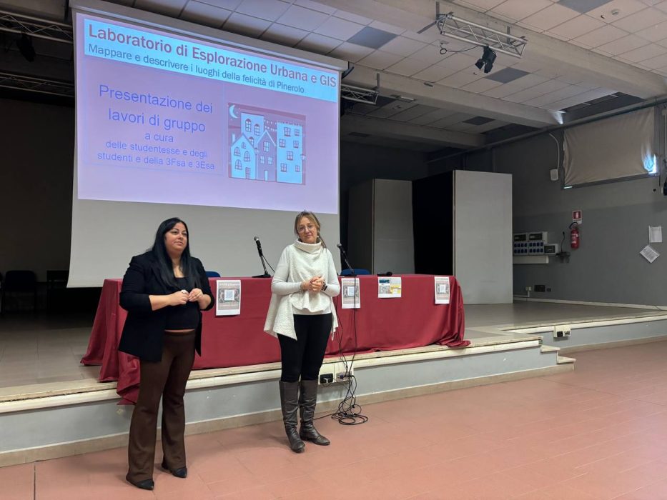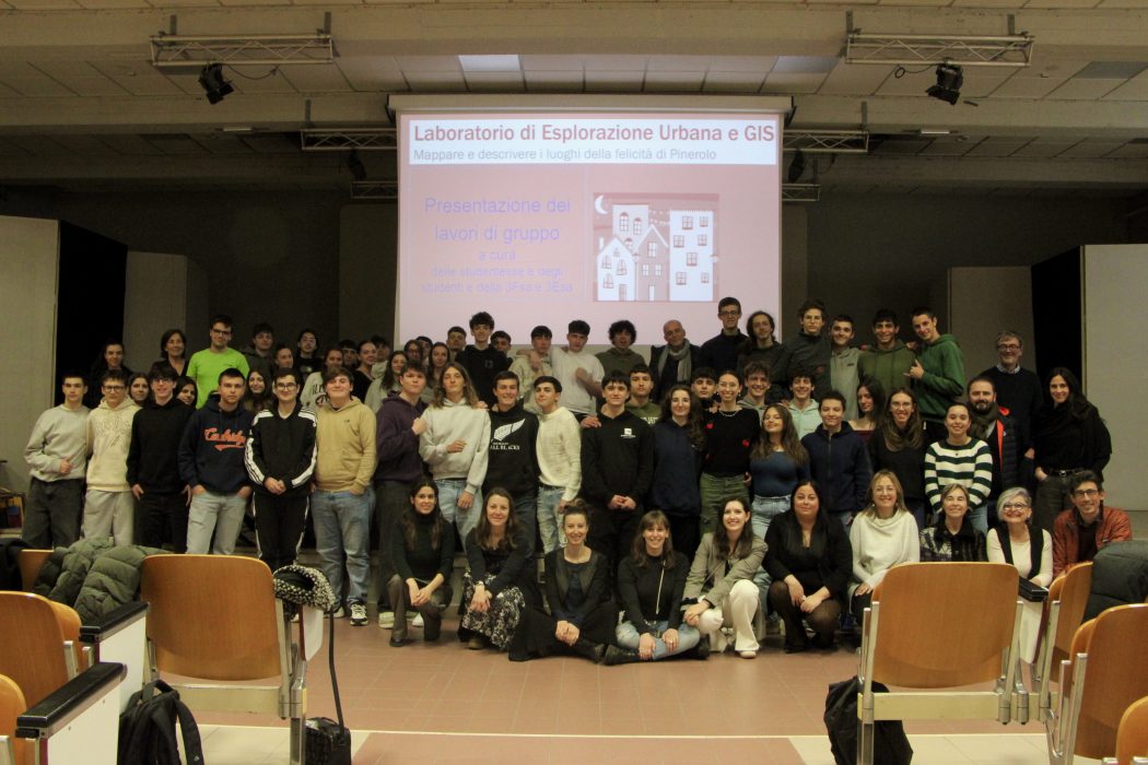 In questo ambito si è tenuto il Laboratorio “Esplorazione Urbana e GIS. Mappare e descrivere i luoghi della felicità di Pinerolo”, che ha proposto un’attività di gruppo per 41 studentesse e studenti del Liceo Scientifico M. Curie di Pinerolo supportandoli nella creazione di percorsi tematici del territorio pinerolese per indagare la relazione tra spazi e felicità.