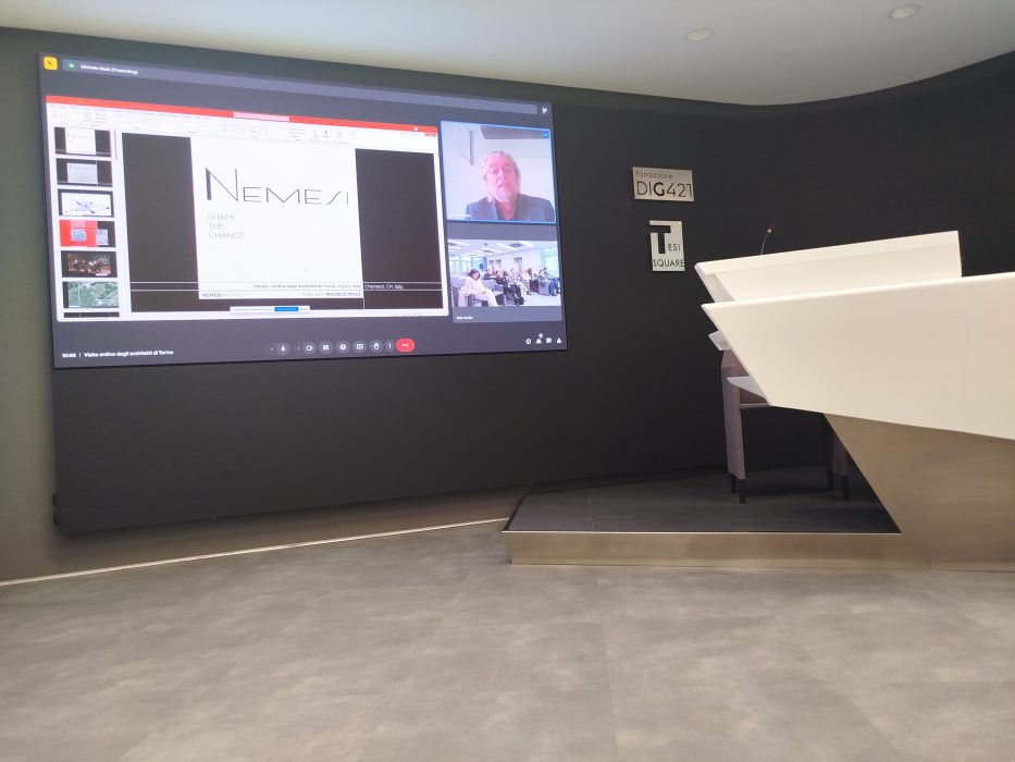 A condurre la visita è stata la dott.ssa Marcella Brizio, vicepresidente della Fondazione Digital Innovation Gate421. La visita degli spazi immaginati da Nemesi si è sviluppata attraverso un percorso che ha toccato gli ambienti di lavoro e di riunione dei dipendenti di Tesisquare posti su quote differenti e raccordati tra loro in un insieme continuo che conduce alla parte finale aperta su un parco naturalistico ad uso dei dipendenti ma in parte anche al pubblico esterno. Al termine della visita del complesso c’è stato un momento di confronto nella Sala Conferenze in cui l’architetto Michele Molé, in collegamento video da Roma, ha illustrato gli aspetti su cui ha improntato il progetto.