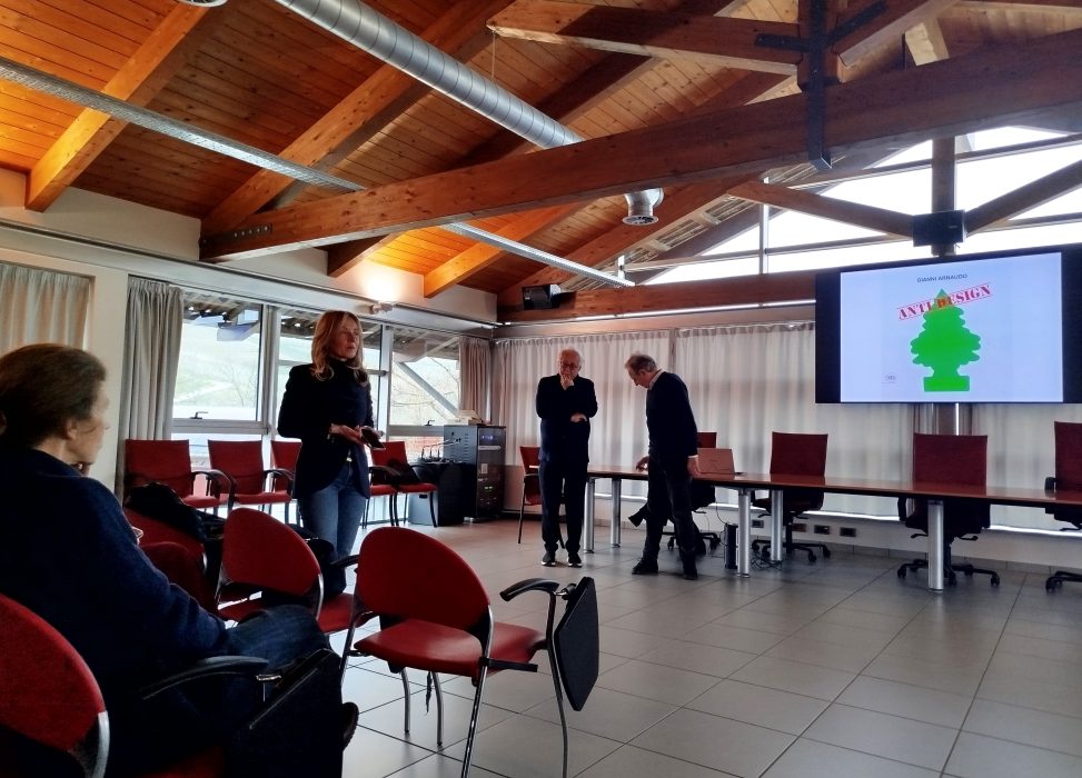 La giornata è poi proseguita, dopo una sosta per il pranzo a Bra, verso la cantina Vite Colte di Barolo dove il gruppo è stato ricevuto dal presidente, dott. Quadrumolo, e dal progettista, l’architetto Gianni Arnaudo, che ha illustrato, all’interno di una lectio magistralis, la genesi del progetto e la sua storia di designer a partire dal recente volume Anti-design. Al termine della visita di Vite Colte, ancora il tempo di ammirare un’altra cantina di Gianni Arnaudo, l’Astemia Pentita, uno slittamento di volumi, a ricordare scatole di bottiglie di vino sovrapposte, che cela la cantina ipogea.