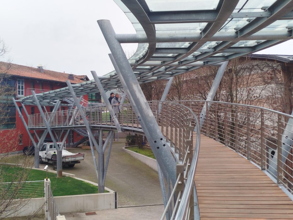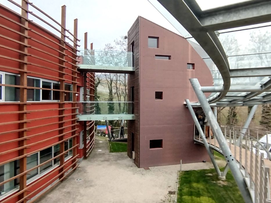 Il tour è iniziato al mattino dal Campus Tesisquare – DIG 421, Digital Innovation Gate, a Roreto di Cherasco (CN), progetto di Nemesi Architects, studio con base a Roma fondato da Michele Molè e Susanna Tradati. Il progetto ha avuto inizio nel 2019 e ha visto nel 2021 il completamento del Campus A, mentre è in preparazione il prosieguo dell’intervento che prevede la realizzazione dei Campus B e C a completamento del ‘Borgo collaborativo’, una cittadella dell’innovazione digitale che si ispira alla filosofia del lavoro di matrice olivettiana.