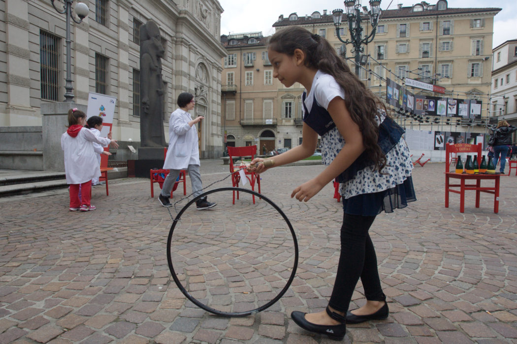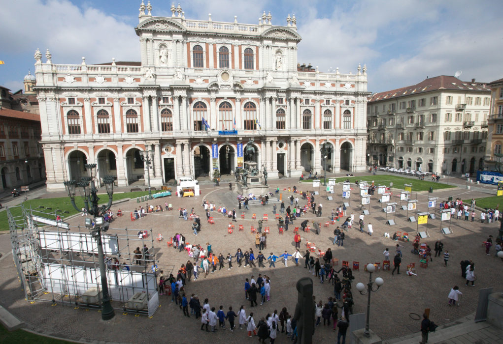 Una città non potrà mai essere intelligente se non promuove una cittadinanza attiva e responsabile, con un’attenzione particolare ai bambini. Per questo l’evento ha proposto agli alunni delle scuole che hanno aderito al progetto di mobilità sostenibile di percorrere a piedi un cammino che si è concluso in piazza Carlo Alberto. Qui sono stati accolti da un’installazione costituita da 100 sedie rosse, precedentemente colorate dagli alunni all’interno del progetto a cura di ITER-Istituzione Torinese per una Educazione Responsabile. Per alcune ore le sedie si sono trasformate in 100 spunti di ispirazione per i giochi dei bambini, dando loro modo di riappropriarsi dello spazio urbano. A questo è seguito un momento di riflessione rivolto agli adulti: è possibile progettare e realizzare una città a misura di bambino?