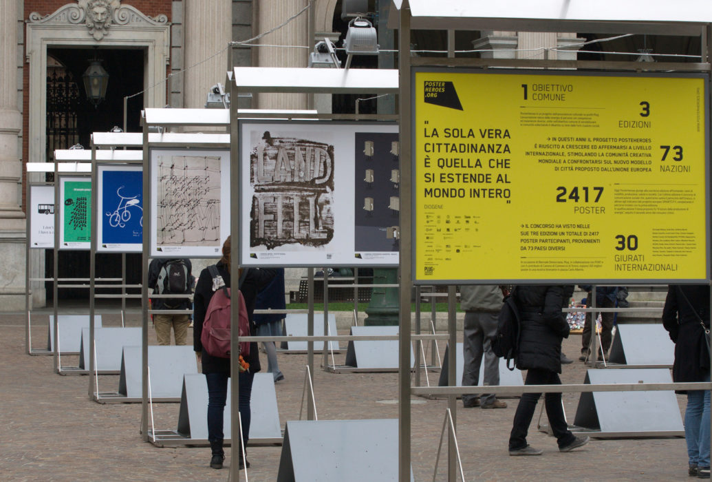 Produzione, salute, mobilità e vita pubblica sono i temi su cui hanno lavorato i creativi provenienti da 59 Paesi rispondendo con 879 poster alla terza edizione del concorso internazionale di comunicazione e grafica sociale Posterheroes, bandito dall’associazione culturale Plug in collaborazione con la Fondazione. Alcuni dei manifesti pervenuti sono stati tra i protagonisti della mostra allestita in piazza Carlo Alberto, mentre 10 sono stati sottoposti al giudizio del pubblico di Biennale durante l’evento di votazione popolare.