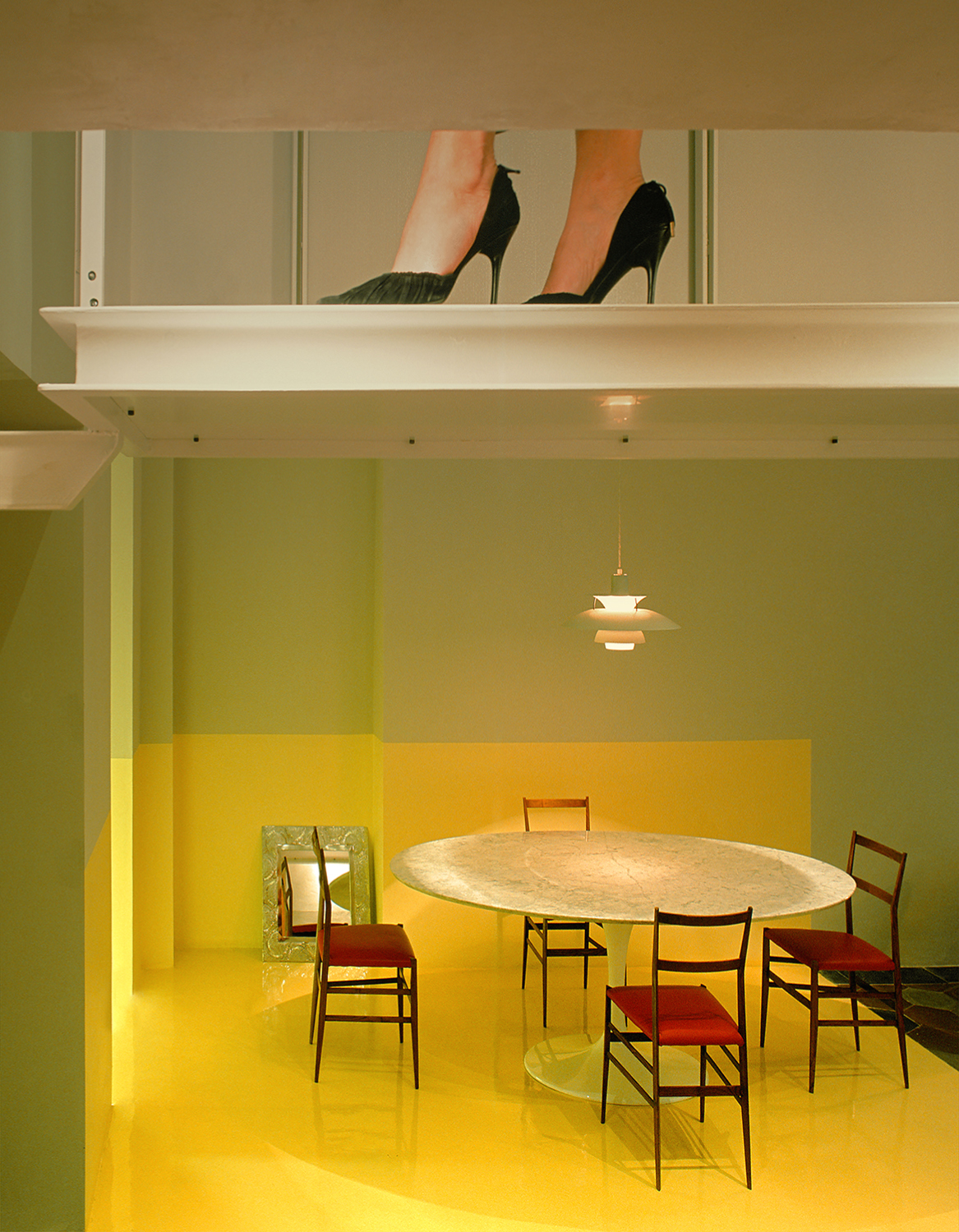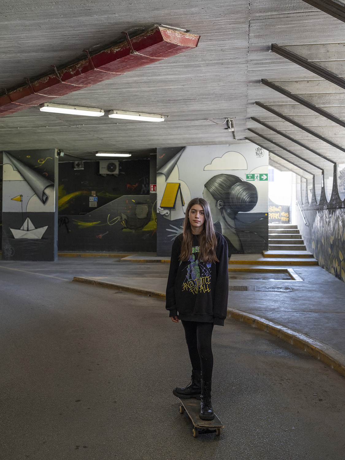 - Fotografie vincitrici in ex aequo per la Sezione Fotografɜ professionistɜ, “Senza titolo” di Beppe Giardino e “Nel parcheggio sotterraneo a Forlì” di Allegra Martin, con la seguente motivazione: Le fotografie di Giardino e Martin evidenziano due differenti quanto complementari visioni della felicità. Da una parte, Giardino visualizza l’idea di uno spazio privato, scrigno delle emozioni e della complicità di una coppia: lo sguardo voyeuristico del fotografo e le scarpe della donna, riferimento alla cultura visiva pubblicitaria, sono messi in relazione con simboli del patrimonio culturale del design d’interni, offrendo così uno spazio in divenire e esito del proprio vissuto personale. Dall’altra, Martin racconta uno spazio pubblico d’autore e le dinamiche di riappropriazione di questo da parte delle giovani generazioni. La felicità è collegata all’idea di attivazione dello spazio architettonico dove sentirsi individui e comunità, riconoscendosi nei codici, nei simboli e nelle estetiche urbane globali”.