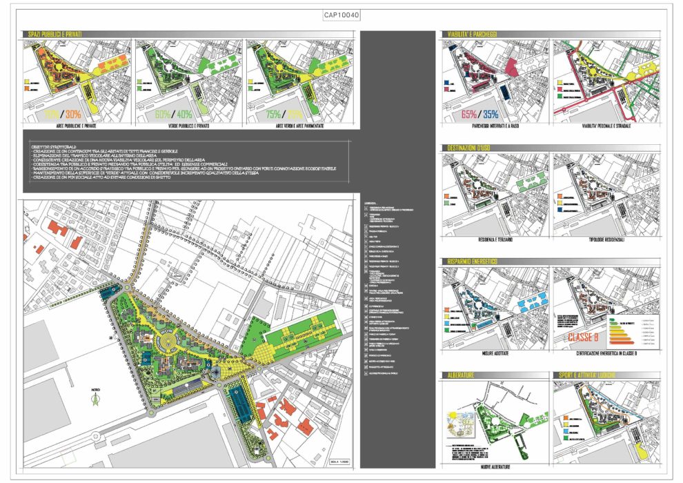 Oggetto del concorso di idee è d. L’obiettivo è duplice: valorizzare la funzione storicamente riconosciuta a questo sito di “polmone verde” della città e realizzare nuove residenze ed edifici destinati a servizi, ricucendo così i quartieri delle frazioni Gerbole e Tetti Francesi. L’iniziativa nasce dalla necessità di riorganizzare un tessuto urbano frammentato da alcuni insediamenti industriali di grandi dimensioni e di favorire l’integrazione funzionale ed estetica delle varie componenti per un miglioramento complessivo dell’area.