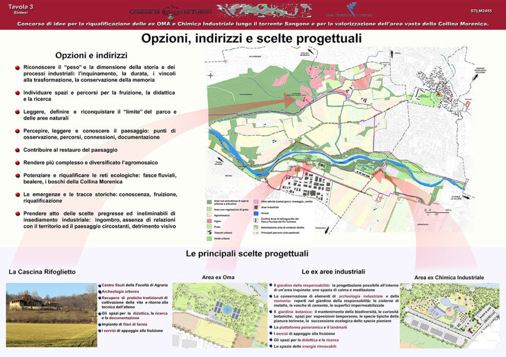 Il tema del concorso di idee è la riqualificazione delle aree ex OMA e Chimica Industriale e dell’area della Collina Morenica, due ambiti territoriali situati sulle sponde opposte del torrente Sangone a Rivalta di Torino.