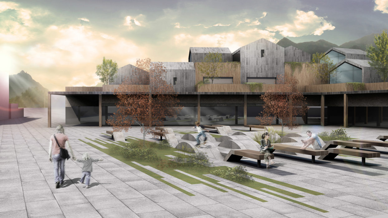 Riqualificazione urbanistica e paesaggistica attraverso la definizione di una nuova viabilità, la ricucitura dell’area più antica e la creazione di un nuovo punto di aggregazione