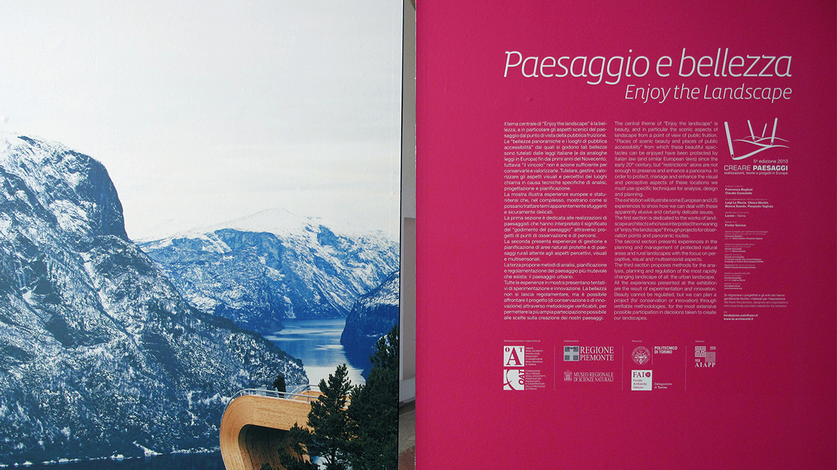 Con questa edizione Creare Paesaggi prosegue il suo itinerario nella cultura del paesaggio contemporaneo indagandone gli aspetti di percezione individuale e collettiva e approfondendo i modi con i quali il progetto, pianificazione e la gestione del paesaggio rispondono alla domanda di fruizione sociale. Paesaggio e bellezza – Enjoy the Landscape invita a tornare ad occuparsi e a godere delle bellezze naturali e culturali, a migliorare la fruizione pubblica del paesaggio, attraverso progetti di luogo e di rete e modalità di gestione del territorio.
