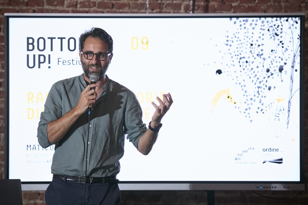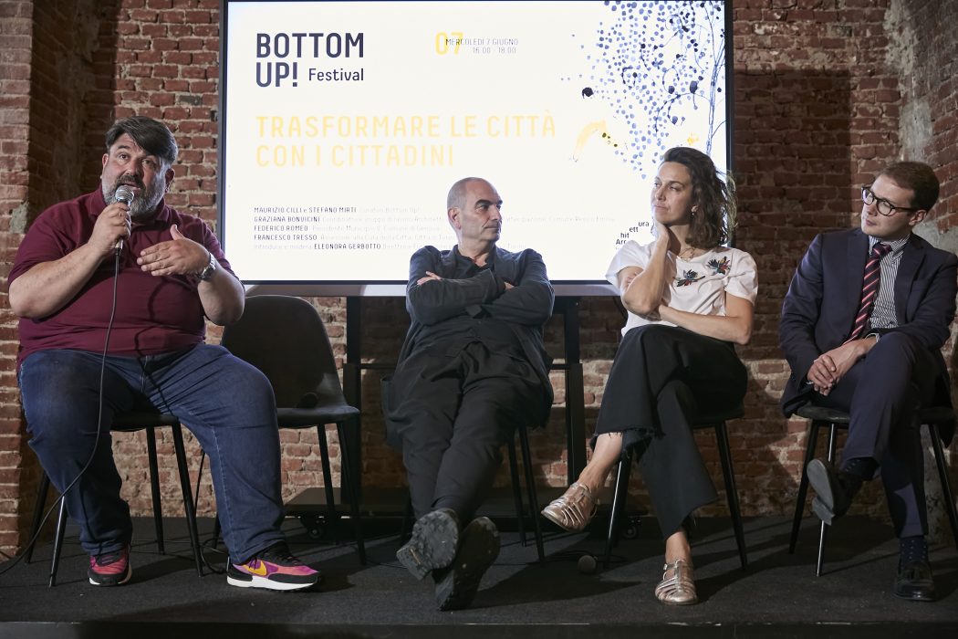 Bottom Up! è un processo sperimentale di coinvolgimento dei cittadini in azioni di trasformazione urbana. Ha l’obiettivo di diffondere la conoscenza dell’architettura contemporanea e favorire pratiche di trasformazione urbana dal basso. Si propone come modello virtuoso di ascolto dei bisogni dei luoghi e di chi li abita e rappresenta un’occasione per diffondere l’idea dell’Architettura e dell’Urbanistica come discipline sociali, capaci di stimolare pratiche di relazione e costruzione condivisa di valore urbano.